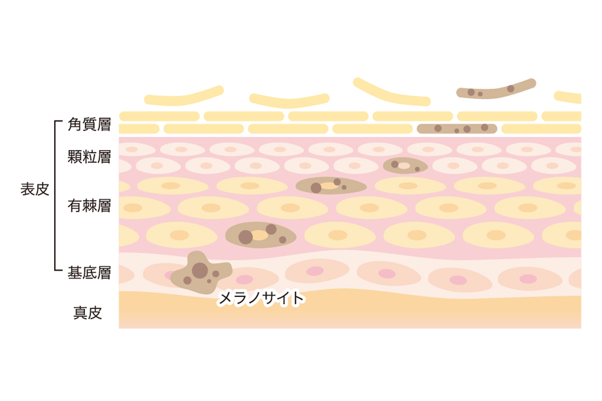 また、肌への刺激やホルモンバランスの乱れなどで、効率的にターンオーバーが行われていないことも、メラニン色素が蓄積していく原因のひとつとなります。