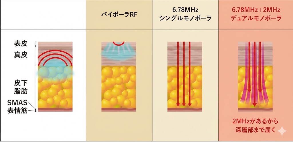 世界初の2つの周波数同時照射で、皮膚の深層と浅層にアプローチ